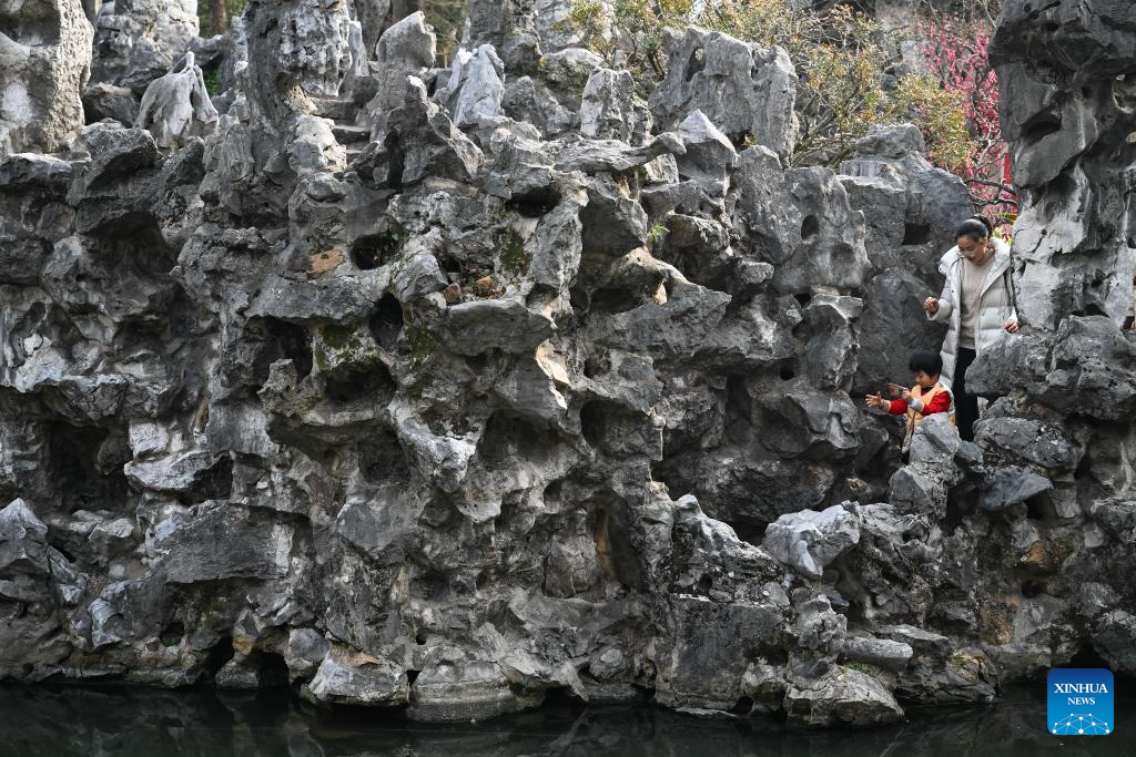 Tourists visit the Lion Grove Garden in Suzhou, east China's Jiangsu Province, Feb. 26, 2025.