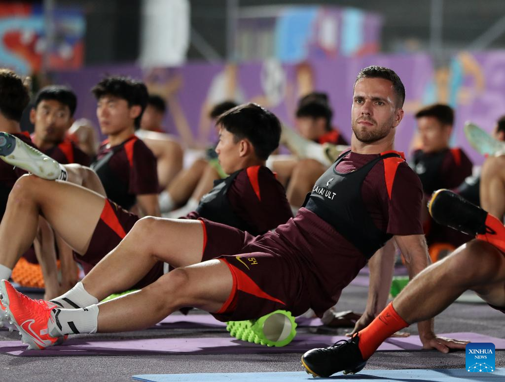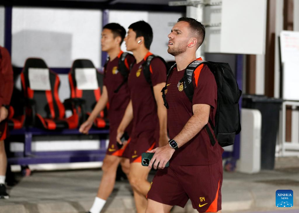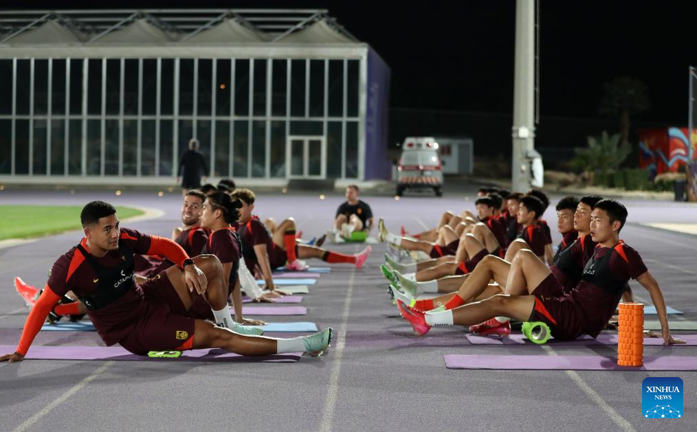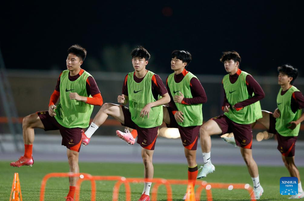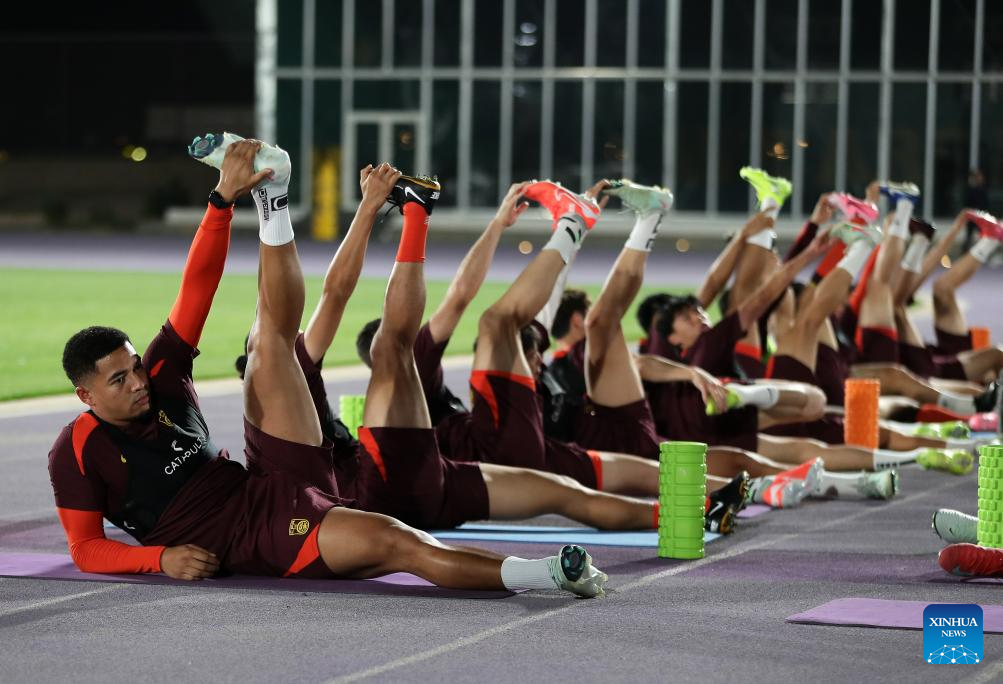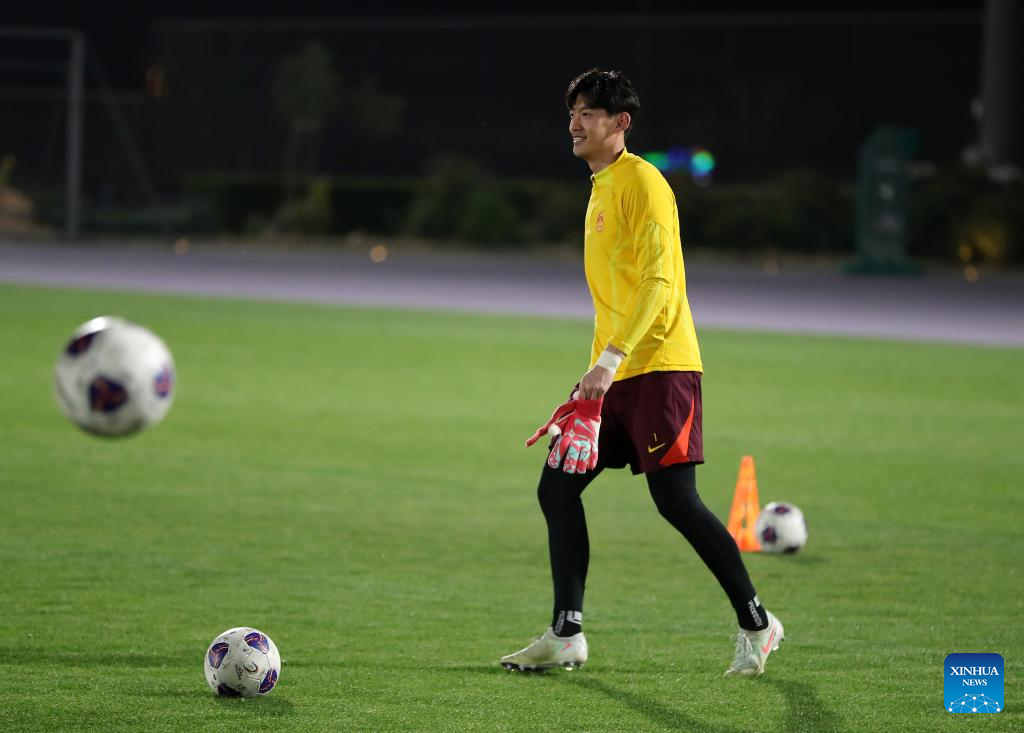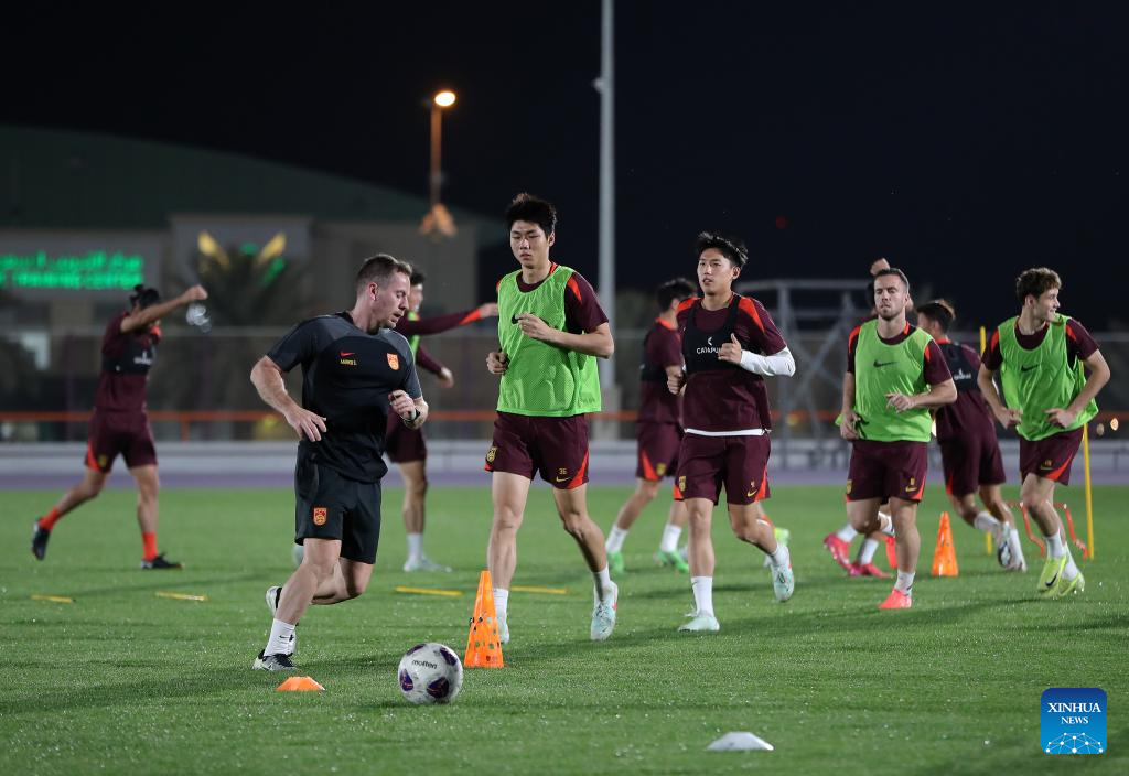 Players of China attend a training session for the upcoming 2026 FIFA World Cup Asian Qualifiers match between Saudi Arabia and China in Riyadh, Saudi Arabia, March 18, 2025. (Xinhua/Wang Dongzhen)