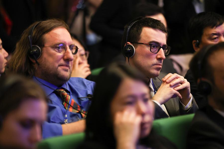 Guests attend a roadshow of the third China International Supply Chain Expo (CISCE) in Milan, Italy, on March 18, 2025. A roadshow of the CISCE was held Tuesday in Milan, Italy, with bilateral cooperation highlighted and cooperation agreements signed. (Xinhua/Li Jing)