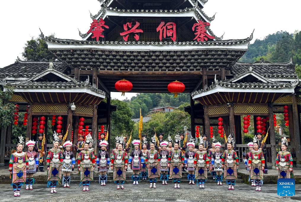 Villagers sing the grand song of the Dong ethnic group for tourists at the Zhaoxing Dong Village in Liping County of Qiandongnan Miao and Dong Autonomous Prefecture, southwest China's Guizhou Province, March 18, 2025. Located in Liping County of Qiandongnan Miao and Dong Autonomous Prefecture, Zhaoxing Dong Village is home to over a thousand households of the Dong ethnic group. The traditional architectural style and rich cultural heritage of the Dong ethnic group are well-preserved.