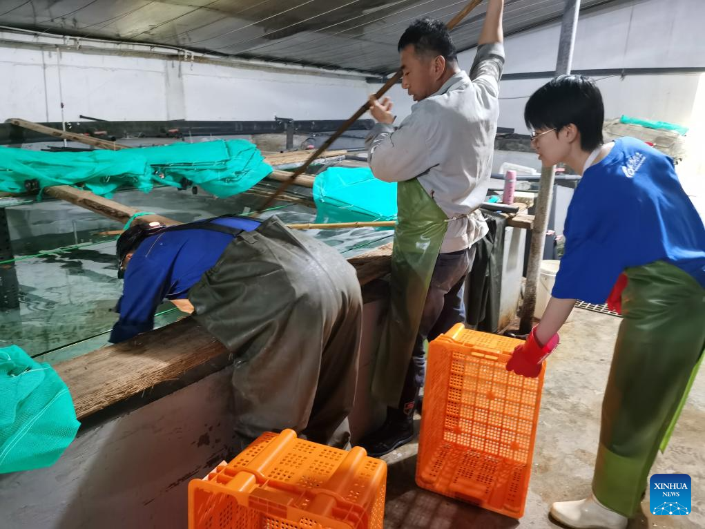 Chu Yichen assembles underwater bionic robotic gripper at Lindong Bionic technology co., ltd. in Shenyang, northeast China's Liaoning Province, March 18, 2025. (Xinhua/Wu Qinghao)