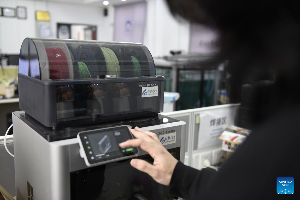 A staff member operates a 3D printer at Lindong Bionic technology co., ltd. in Shenyang, northeast China's Liaoning Province, March 18, 2025. (Xinhua/Wu Qinghao)