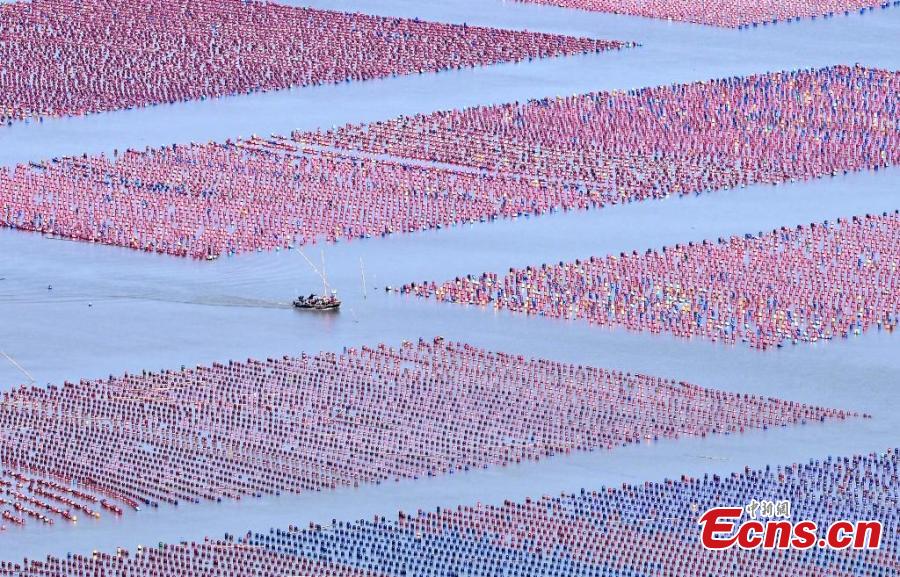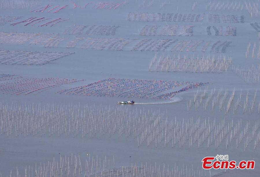 Aerial view of a sea farm in Xiapu County, east China's Fujian Province, March 18, 2025. (Photo: China News Service/Zhang Bin)