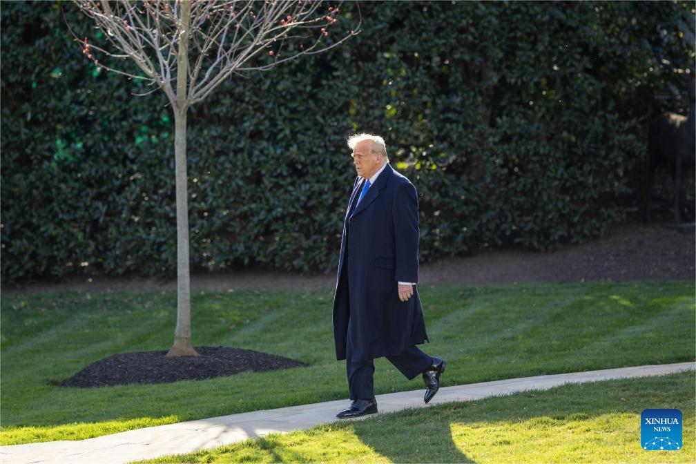 U.S. President Donald Trump walks toward the South Lawn to board Marine One at the White House in Washington, D.C., the United States, on March 21, 2025. Trump suggested on Friday he is open to the proposal that the United States could be offered "associate membership" in the British Commonwealth. (Xinhua/Hu Yousong)