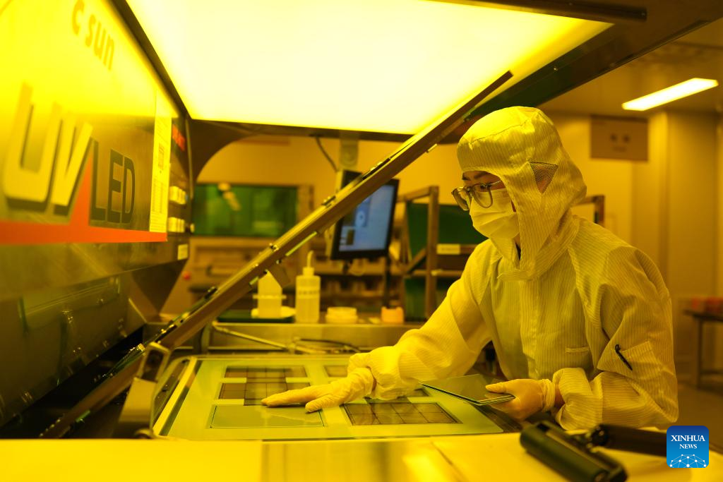 A technician works at an intelligent workshop of Konfoong Tongxin Semiconductor Material Co., Ltd. in Yuyao, east China's Zhejiang Province, March 20, 2025. In recent years, Yuyao has been continuously strengthening the introduction and cultivation of integrated circuit enterprises and optimizing industrial layout. In 2024, the added value of the city's integrated circuit industry reached 3.048 billion yuan (about 420.5 million U.S. dollars), marking a year-on-year growth of 47.5 percent. (Xinhua/Huang Zongzhi)