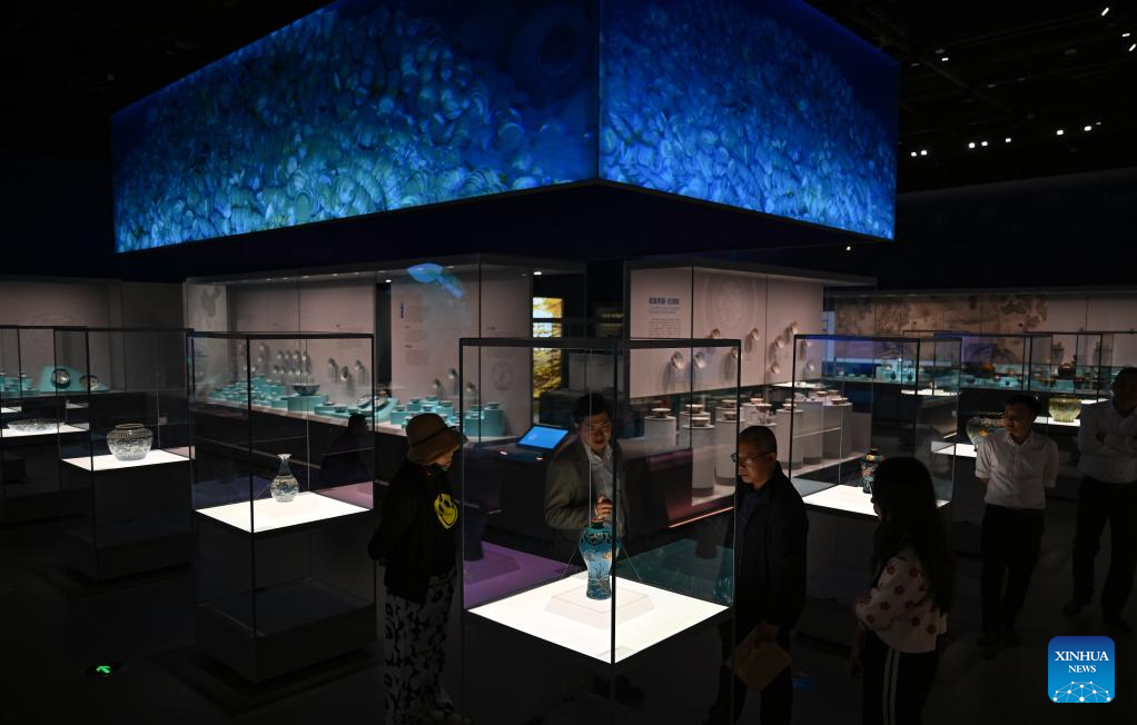 Visitors view an exhibition featuring relics retrieved from two ancient shipwrecks discovered in the South China Sea at the China (Hainan) Museum of the South China Sea in Qionghai, south China's Hainan Province, March 20, 2025. Empowered by Boao Forum for Asia, Qionghai has built an exquisite array of rural clusters and embarked on a road to rural revitalization driven by tourism. (Xinhua/Guo Cheng)