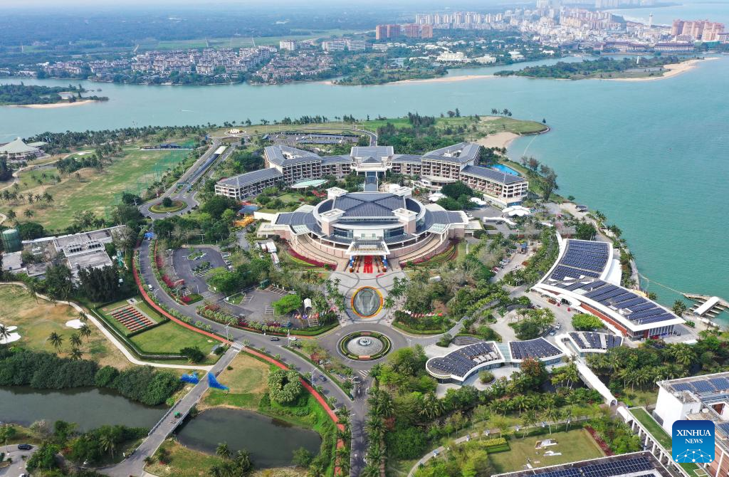 An aerial drone photo taken on March 21, 2025 shows a view of the Boao Forum for Asia International Conference Center of Boao Town in Qionghai, south China's Hainan Province. Empowered by Boao Forum for Asia, Qionghai has built an exquisite array of rural clusters and embarked on a road to rural revitalization driven by tourism. (Xinhua/Guo Cheng)