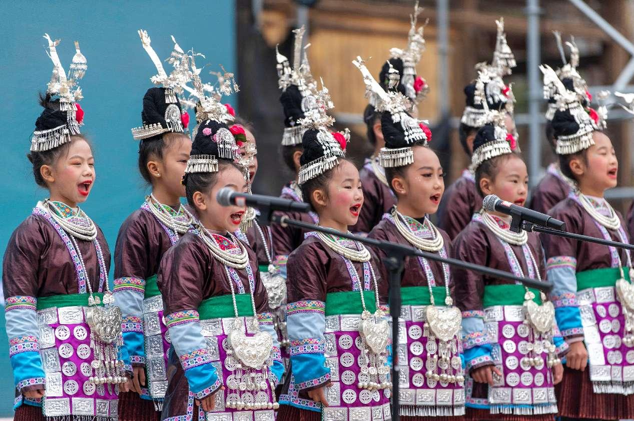 This enchanting sound came from Yang Xiangni, a Generation-Z lead vocalist of the Wuyue Chan'ge ensemble in southwest China's Guizhou province, and a group of young women from the Dong ethnic group. With the Grand Song of the Dong ethnic group, they provided audiences with a unique auditory experience.