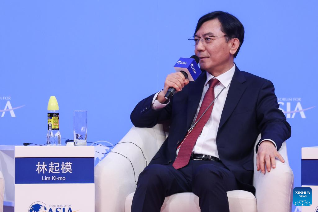 Lim Ki-mo, ambassador for International Relations of Jeju Special Self-Governing Province of South Korea, speaks at a panel discussion themed on "Global Free Trade Port Development" during the Boao Forum for Asia (BFA) Annual Conference 2025 in Boao, south China's Hainan Province, March 25, 2025. (Xinhua/Zhang Liyun)