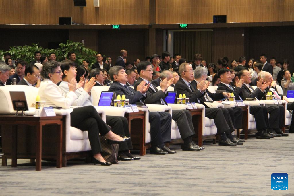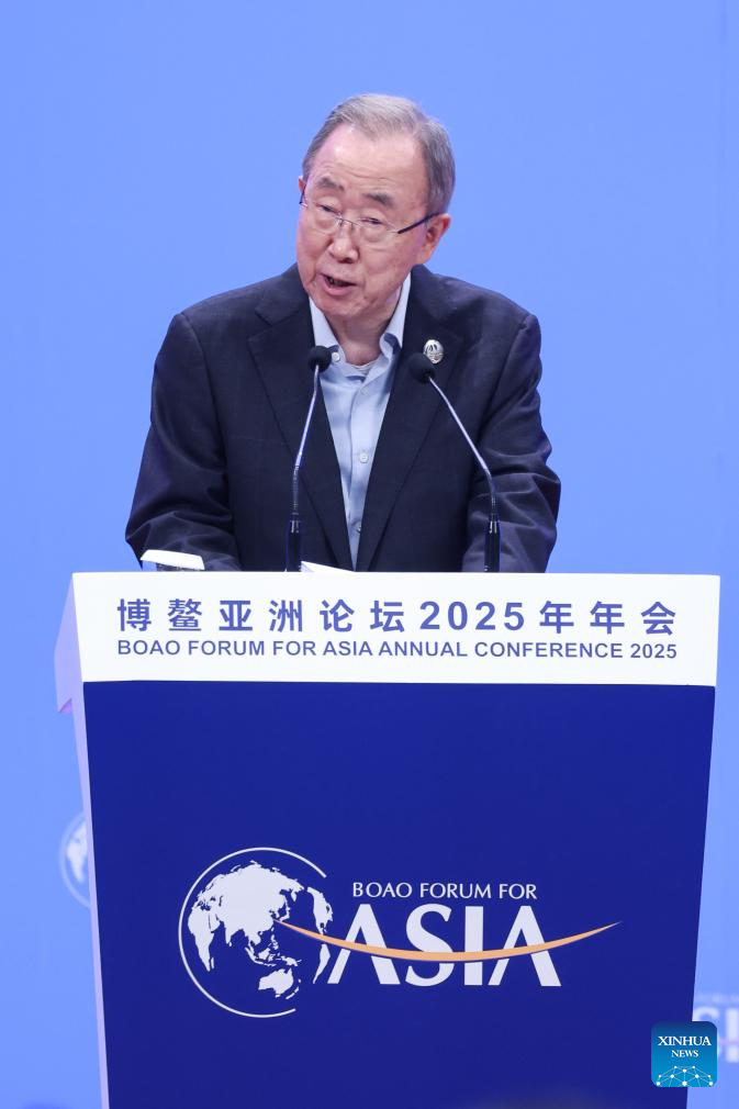 Ban Ki-moon, chairman of Boao Forum for Asia (BFA) and 8th secretary general of the United Nations, delivers a speech at a panel discussion themed on "Global Free Trade Port Development" during the BFA Annual Conference 2025 in Boao, south China's Hainan Province, March 25, 2025. (Xinhua/Zhang Liyun)