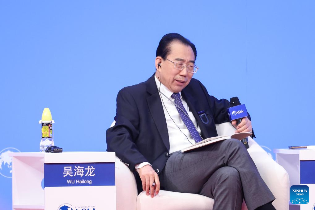 Wu Hailong, president of the China Public Diplomacy Association, speaks at a panel discussion themed on "Global Free Trade Port Development" during the Boao Forum for Asia (BFA) Annual Conference 2025 in Boao, south China's Hainan Province, March 25, 2025. (Xinhua/Zhang Liyun)
