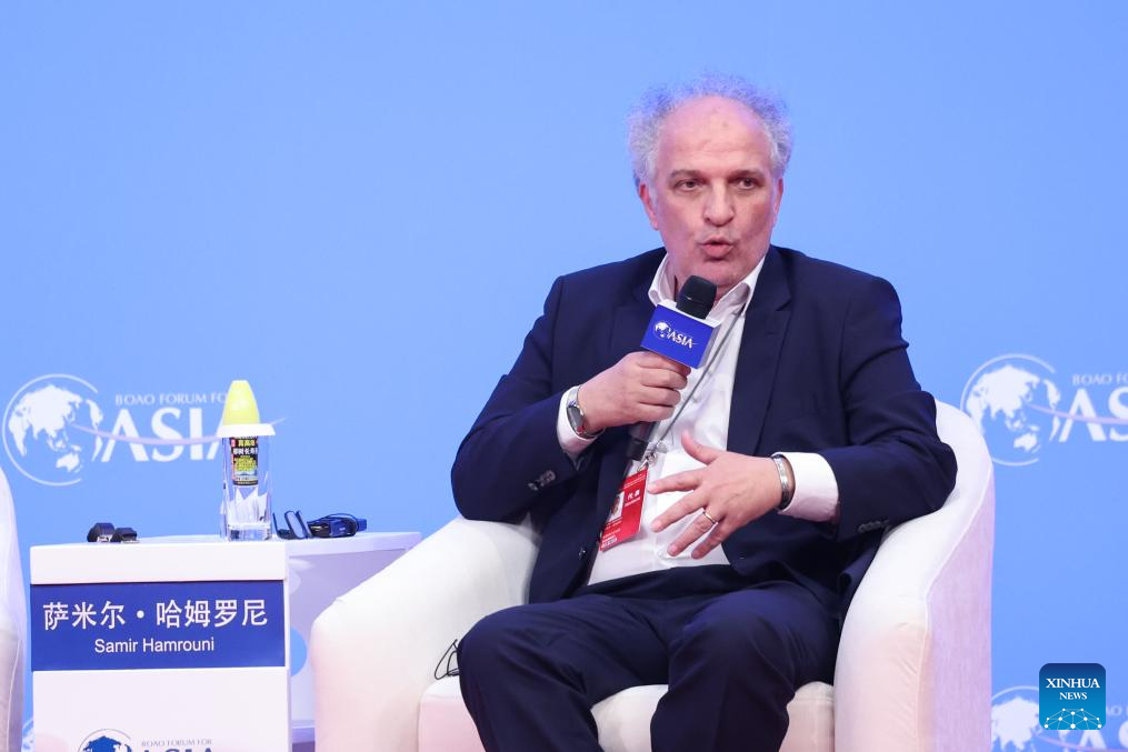 Samir Hamrouni, CEO of the World Free Zones Organization, speaks at a panel discussion themed on "Global Free Trade Port Development" during the Boao Forum for Asia (BFA) Annual Conference 2025 in Boao, south China's Hainan Province, March 25, 2025. (Xinhua/Zhang Liyun)