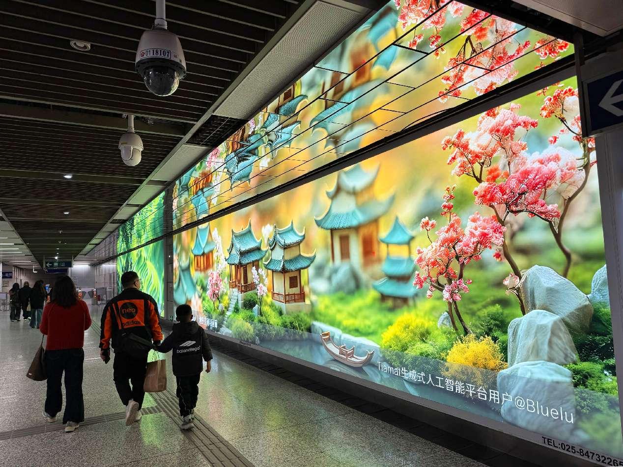 AI-generated pictures are showcased in a subway station in Nanjing, east China's Jiangsu province. (People's Daily Online/Wang Luxian )