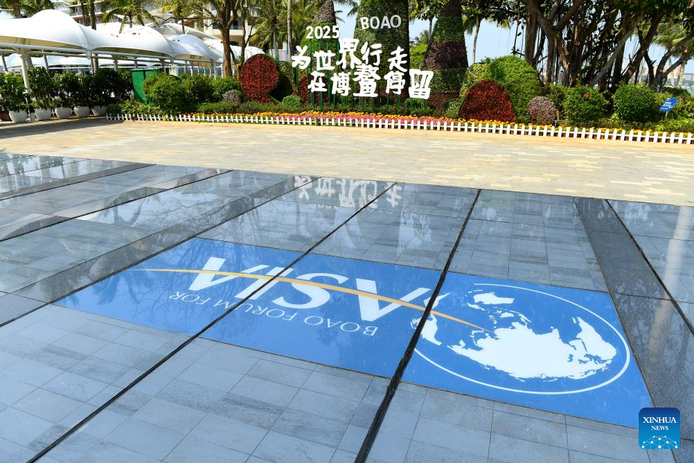 This photo taken on March 25, 2025 shows photovoltaic tiles outside the press center during the Boao Forum for Asia (BFA) Annual Conference 2025 in Boao, south China's Hainan Province. Since its formal inauguration in 2001, the BFA has served as a key platform for the advancement of green development across Asia, facilitating the exchange of insights to promote sustainable growth in the region and beyond.