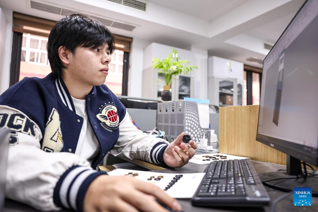 A staff member designs new button products at a button company in Qiaotou Town of Yongjia County, Wenzhou City, east China's Zhejiang Province, March 26, 2025.