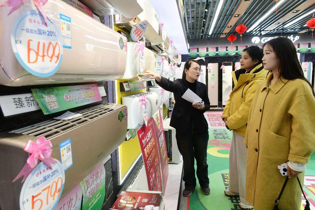 Consumers browse for home appliances at a retail outlet in Fuyang, east China's Anhui province. (People's Daily Online/Wang Biao)