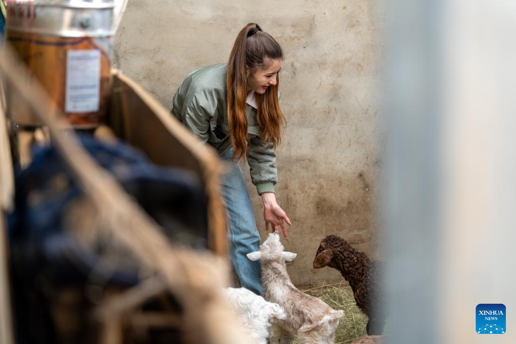Amangul Wapik feeds lambs in Sarijilga Village of Taxkorgan Tajik Autonomous County, northwest China's Xinjiang Uygur Autonomous Region, March 21, 2025. (Xinhua/Xu Hongyan)