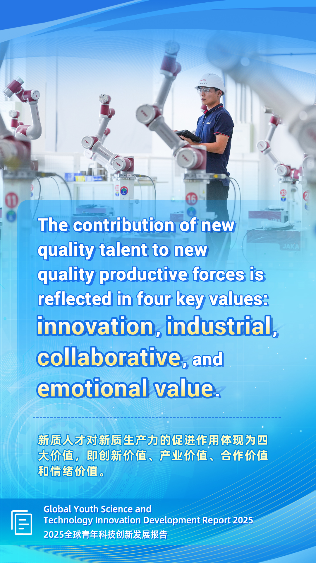 As a key driver for the development of new quality productive forces, new quality talent will contribute vigorous strength to advancing Chinese modernization, according to the 2025 Global Youth Science and Technology Innovation Development Report, unveiled at the Beijing International Youth Innovation and Development Forum, held in parallel with the 2025 Zhongguancun Forum.