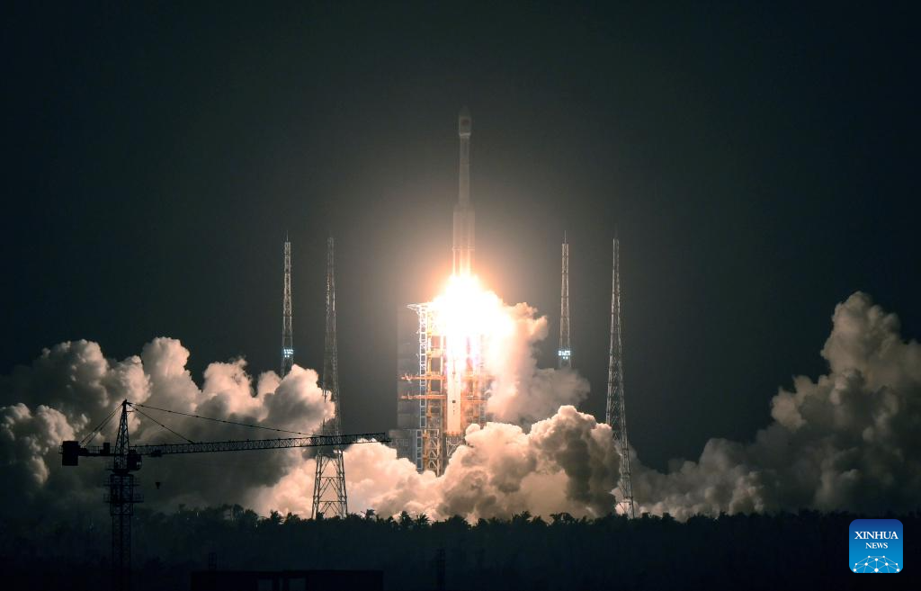 A Long March-7A rocket carrying a new communication technology test satellite blasts off from the Wenchang Space Launch Site on the coast of China's southern island province of Hainan on March 30, 2025. (Xinhua/Guo Cheng)