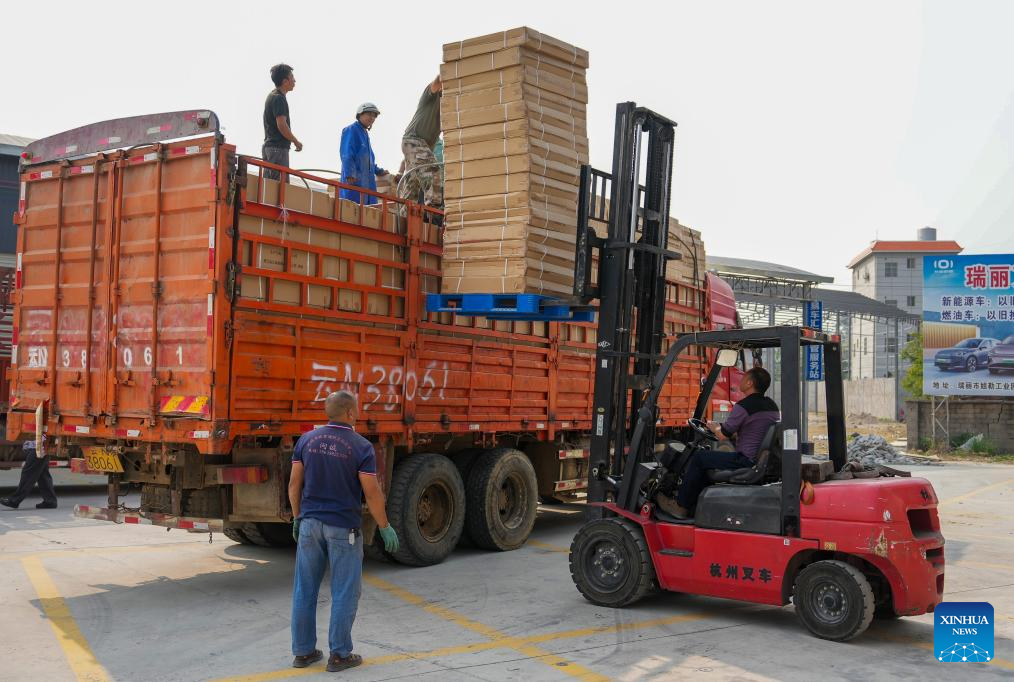 Workers transport tents to be sent to Myanmar for earthquake relief in Ruili, southwest China's Yunnan Province, March 29, 2025. Yunnan Province has sent relief supplies to Myanmar on Saturday, after a massive earthquake jolted the Southeast Asian country on Friday. (Xinhua/Chen Xinbo)
