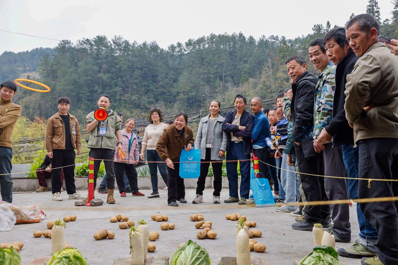 The event featured a variety of fun activities, including tug-of-war, fish-catching in rice paddies, and a grain-carrying relay race with shoulder poles. Both tourists and locals participated, adding to the event's lively atmosphere.