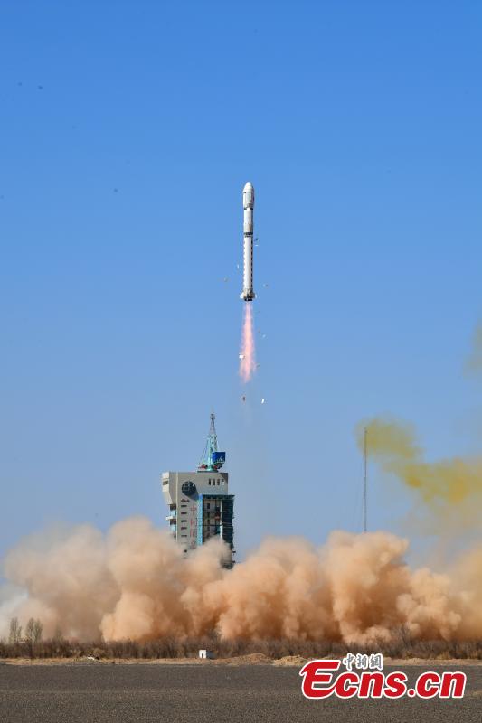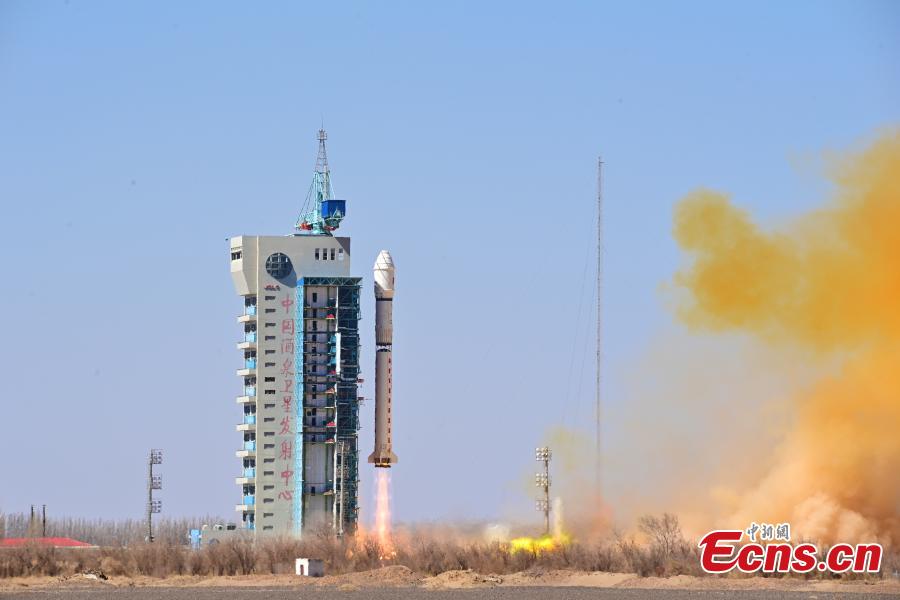 A Long March-2D carrier rocket carrying a test satellite for satellite internet technology blasts off from the Jiuquan Satellite Launch Center in northwest China, April 1, 2025. (China News Service/Wang Jiangbo)