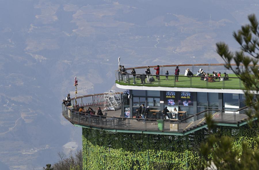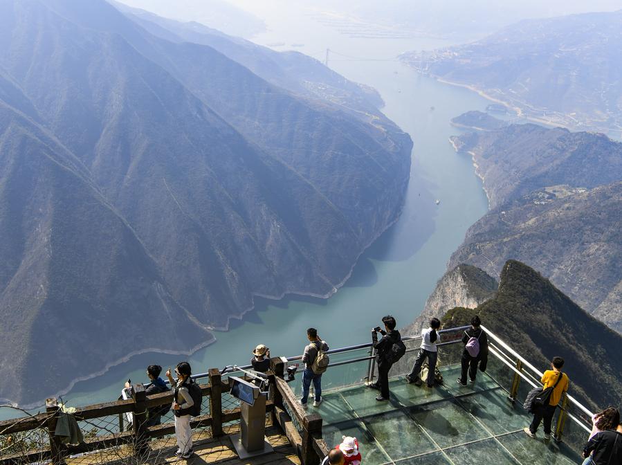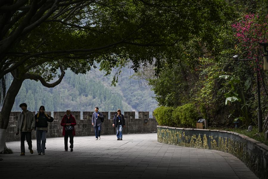 Tourists visit a scenic area in Fengjie County, southwest China's Chongqing Municipality, March 11, 2024. (Xinhua/Wang Quanchao)