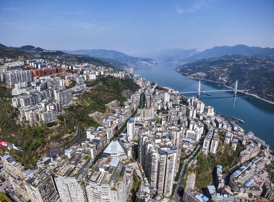 This photo shows a view of Fengjie County, southwest China's Chongqing Municipality, Feb. 13, 2025. (Xinhua/Wang Quanchao)