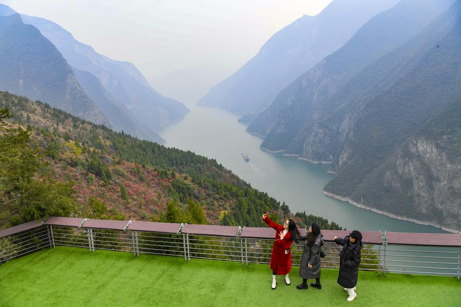 Tourists visit a scenic area in Fengjie County, southwest China's Chongqing Municipality, Dec. 19, 2024. (Xinhua/Wang Quanchao)