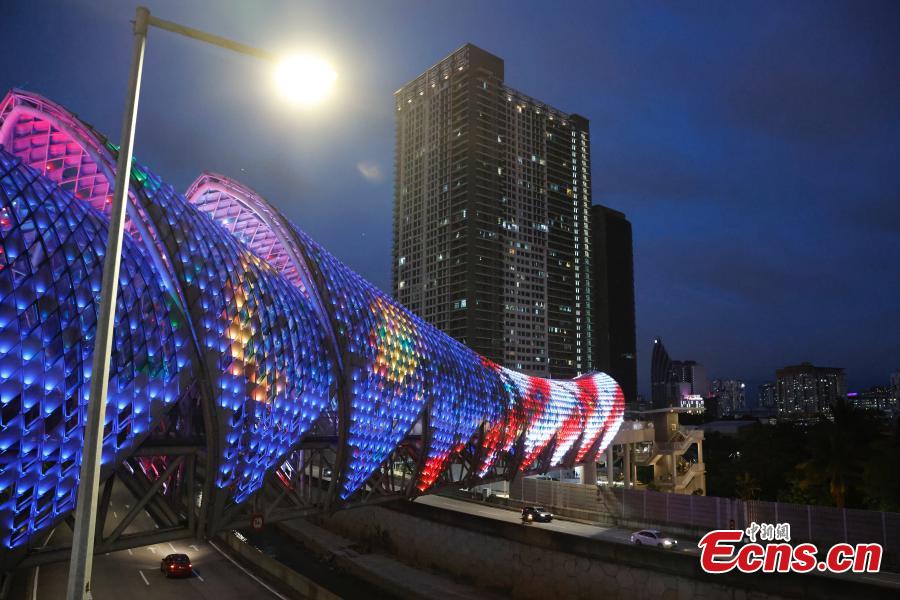 Night scenery of Saloma Link Bridge in Kuala Lumpur, Malaysia, April 13, 2025. (China News Service/Han Haidan)