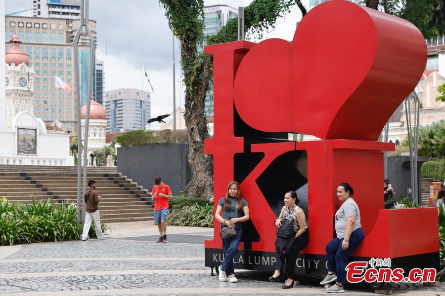 Visitors pose for photos at the historical Dataran Merdeka, or Independence Square, in Kuala Lumpur, Malaysia, April 13, 2025. (China News Service/Han Haidan)