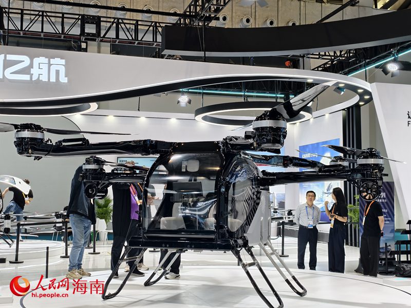 Photo shows a "Land Aircraft Carrier," a flying car developed by Chinese electric vehicle maker XPENG, on display at the ongoing fifth China International Consumer Products Expo in Haikou, south China's Hainan Province. (People's Daily Online/Fu Zemin)