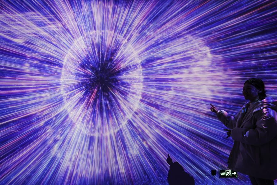 A tourist visits a VR experience hall at an astronomy-themed town in Pingtang County, southwest China's Guizhou Province, on Feb. 18, 2025. (Xinhua/Ou Dongqu)