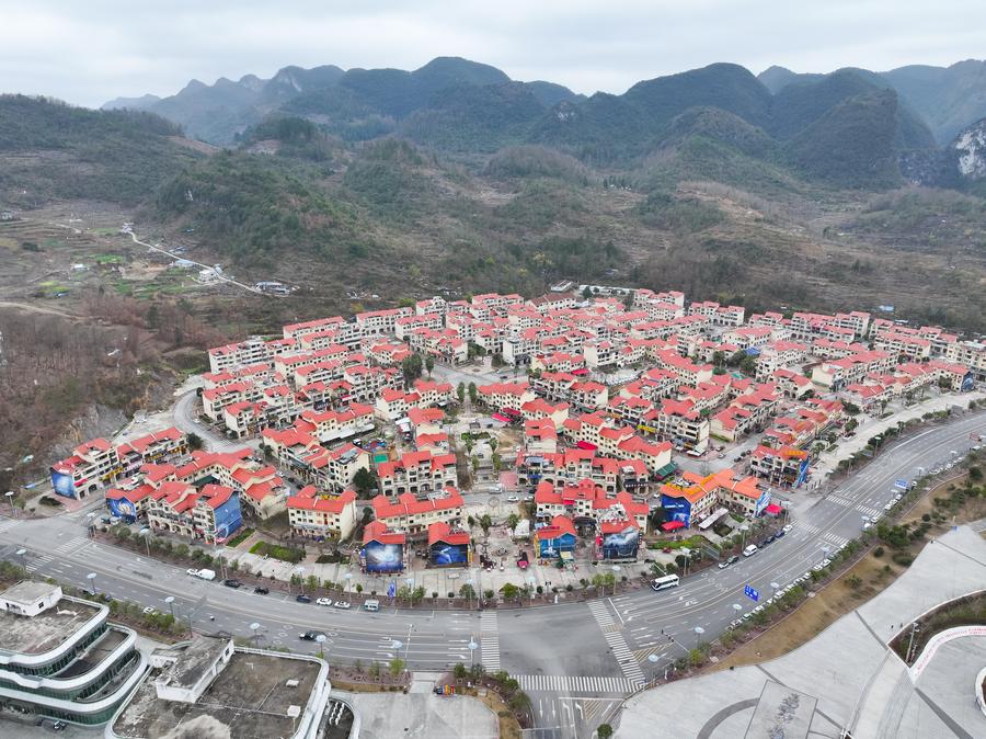An aerial drone photo taken on Feb. 18, 2025 shows a view of Kedu Town, an astronomy-themed town, in Pingtang County, southwest China's Guizhou Province. (Xinhua/Liu Xu)