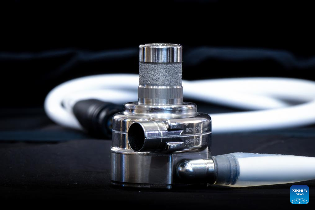 This photo taken on April 14, 2025 shows the magnetically levitated biventricular assist device designed for children in Wuhan, central China's Hubei Province. (Xinhua/Xiao Yijiu)