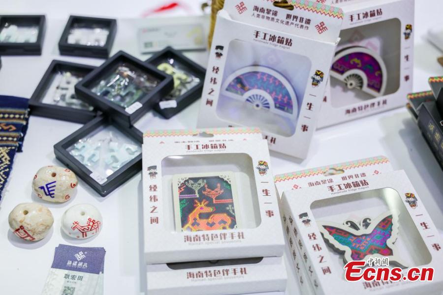 Products featuring China's intangible cultural heritage are displayed at the 5th China International Consumer Products Expo (CICPE) in Haikou, south China's Hainan Province, April 16, 2025. (Photo: China News Service/Luo Yunfei)