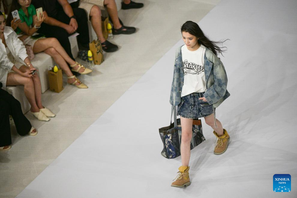Themed on "OASIS", the 2025 CICPE fashion show has held 22 runway shows and events with various Chinese and foreign designer brands from April 12 to 18. It is aimed at supporting excellent young designers across the world and helping their brands go global. (Xinhua/Pu Xiaoxu)