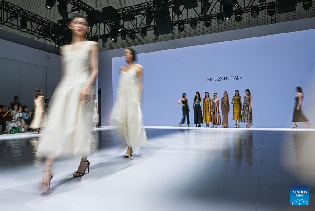 Models present fashion designs of Vietnamese brand "MEL ESSENTIALS" during the 5th China International Consumer Products Expo (CICPE) in Haikou, south China's Hainan Province, April 15, 2025. The 2025 China International Consumer Products Expo (CICPE) fashion show, a side event of the 5th CICPE, staged its closing show here Friday evening.
