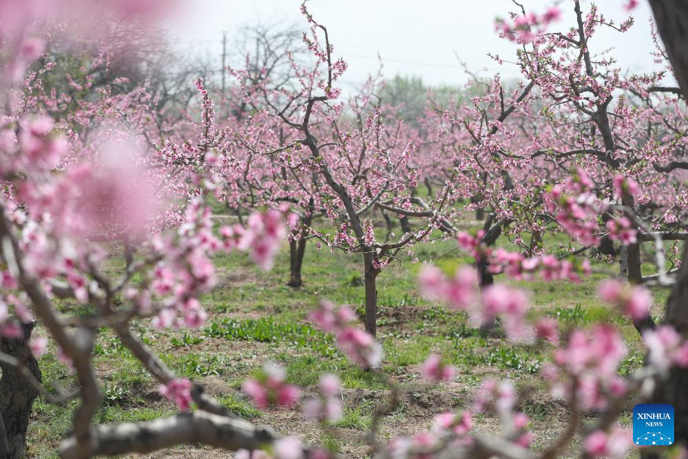 This photo shows peach blossoms in Lanzhou, northwest China's Gansu Province, April 19, 2025. (Xinhua/Lang Bingbing)