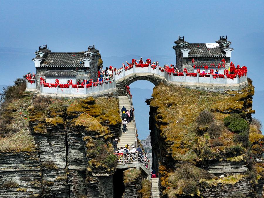 Tourists visit the Mount Fanjing in Tongren City, southwest China's Guizhou Province on April 15, 2025. (Xinhua/Yang Wenbin)