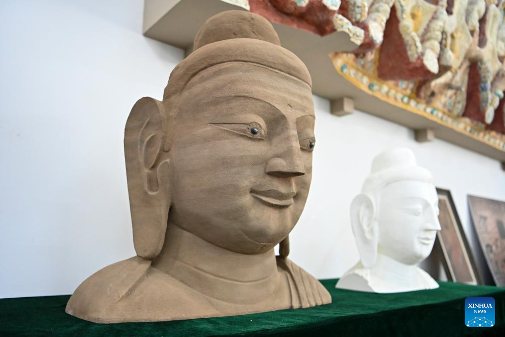 This photo shows 3D-printed Buddha statues at an exhibition hall of the research institute of the Yungang Grottoes in Datong, north China's Shanxi Province, April 16, 2025. (Xinhua/Yang Chenguang)