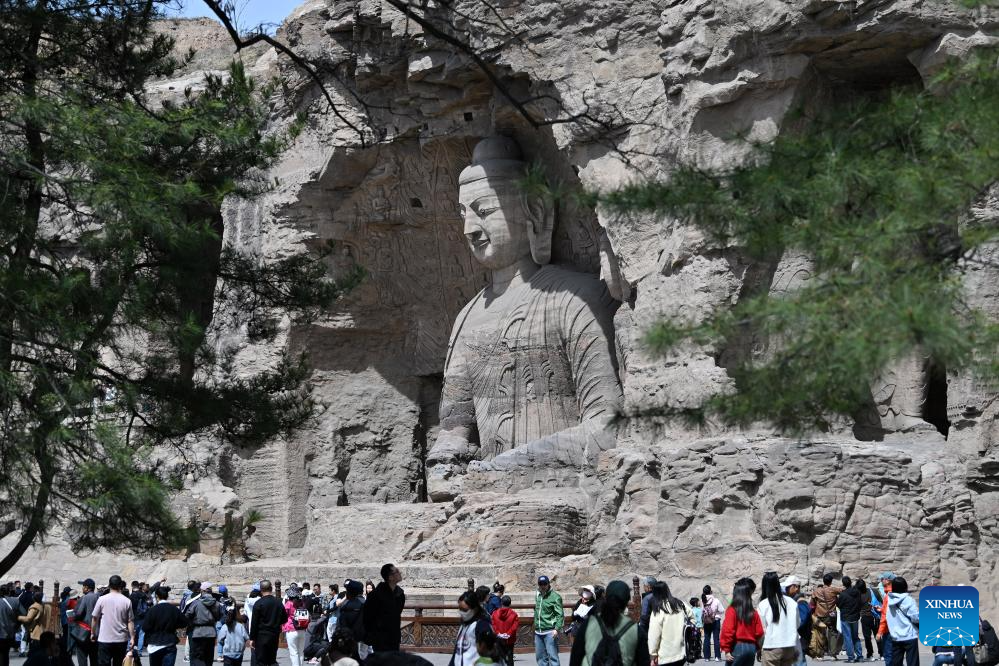 Tourists visit Yungang Grottoes in Datong, north China's Shanxi Province, April 16, 2025. (Xinhua/Zhan Yan)