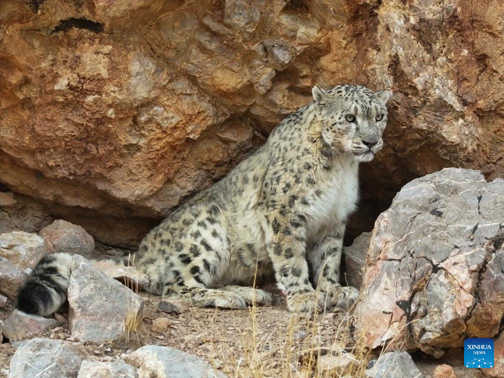A snow leopard is pictured in Gerze County of Ngari Prefecture, southwest China's Xizang Autonomous Region, April 18, 2025. Known as the "king of the snow mountains," the snow leopard is under first-class national protection in China, and is listed as vulnerable by the International Union for Conservation of Nature. (Photo by Sonam Rinchen/Xinhua)