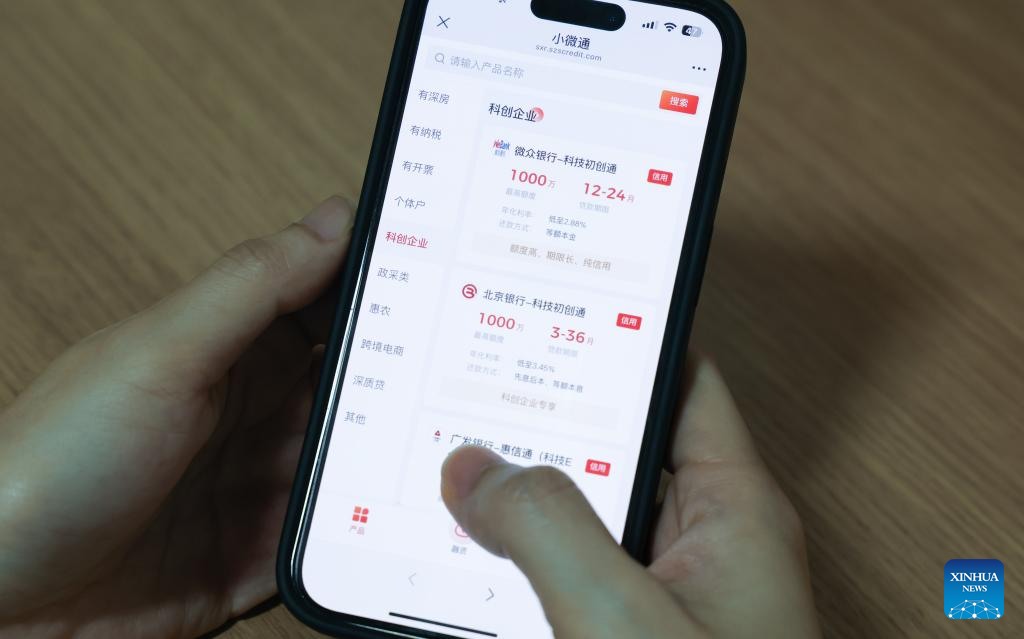 This photo taken in Shenzhen, south China's Guangdong Province, shows a mobile app interface displaying credit products exclusive to technology start-ups on April 21, 2025. (Xinhua/Mao Siqian)
