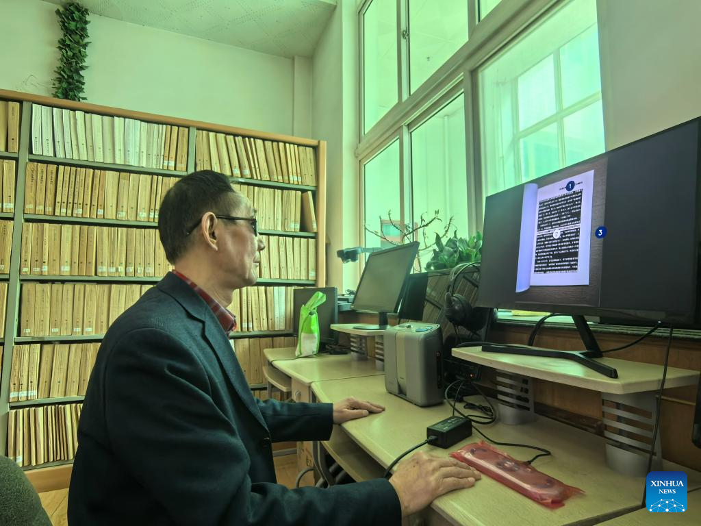 Chang Wei, a traditional Chinese medicine physician with 20 years of medical experience, uses an intelligent book reader at a reading room for the visually impaired people in the provincial library in Lanzhou, northwest China's Gansu Province, April 11, 2025. (Xinhua/Ren Yanxin)