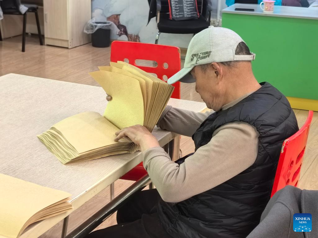 Liu Gengsheng reads a book in Braille at a reading room for the visually impaired people in the provincial library in Lanzhou, northwest China's Gansu Province, April 11, 2025. (Xinhua/Ren Yanxin)