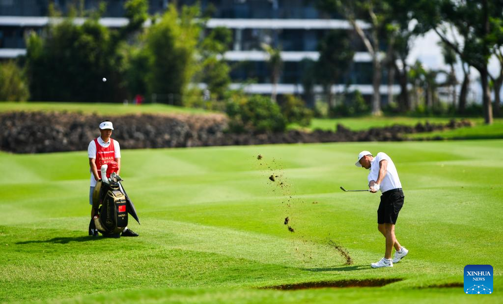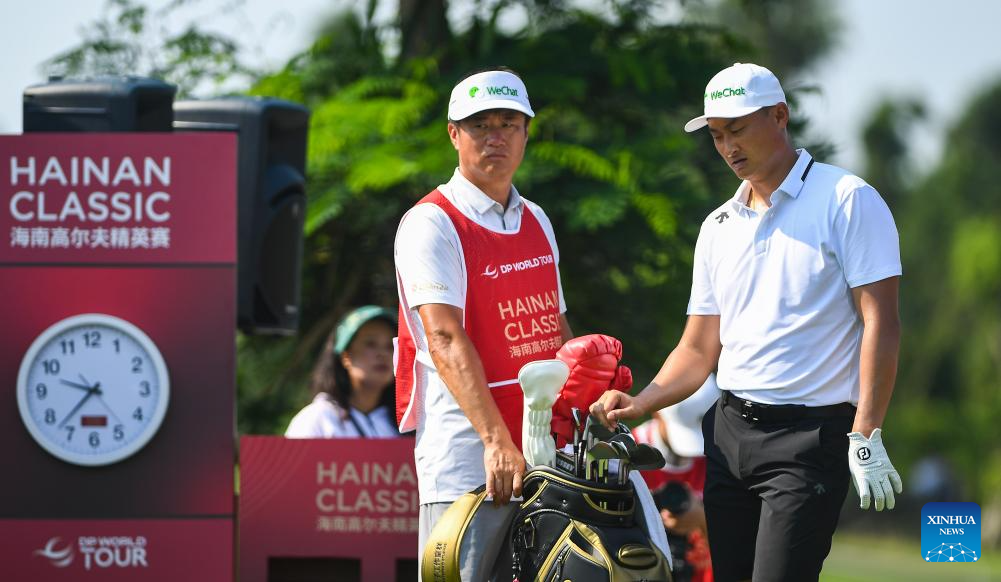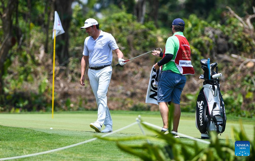 Alfredo Garcia-Heredia (L) of Spain competes during the round 1 at the Hainan Classic golf tournament of the DP World Tour in Haikou, south China's Hainan Province, April 24, 2025. (Xinhua/Yang Guanyu)