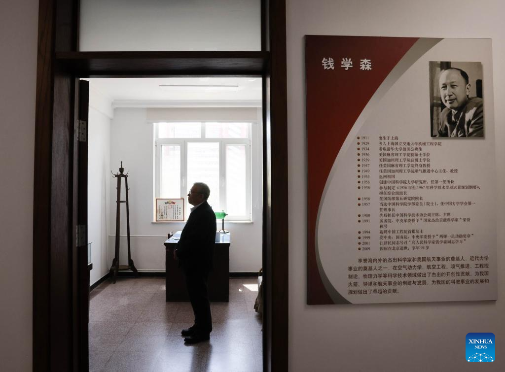 Yang Yiqiang stands in Qian Xuesen's office in Institute of Mechanics, Chinese Academy of Sciences, in Beijing, capital of China, April 17, 2025. Qian is a late scientist who is considered the father of China's space program. Yang Yiqiang once served as former commander-in-chief of the Long March-11 rocket project. In December 2018, he founded CAS Space, a company focusing on rocket development and space launch services. CAS Space's Lijian-1 carrier rockets have already completed multiple launches, supporting remote sensing and experimental satellites. The upcoming Lijian-2 rocket will be capable of supporting satellite internet networking technology and cargo transport missions for the China's Space Station. (Xinhua/Yin Gang)