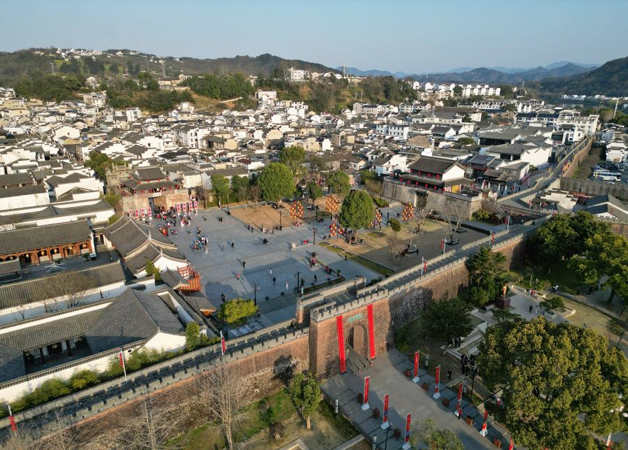 This photo taken on March 18, 2025 shows the Yanghe Gate of Huizhou ancient town in Shexian County, east China's Anhui Province. (Xinhua/Du Juanjuan)