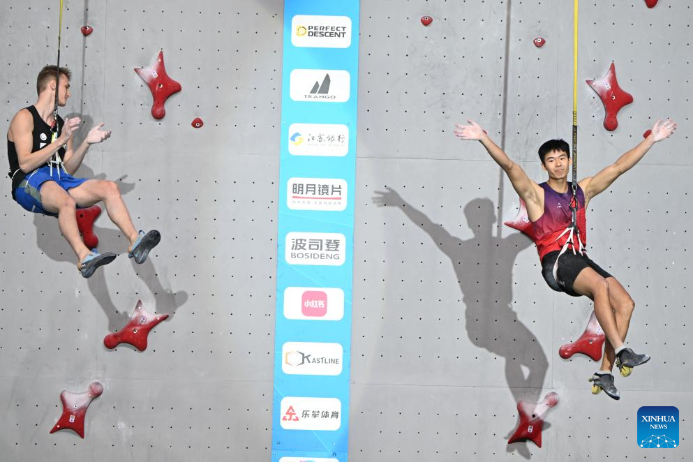 WUJIANG, China, April 26 (Xinhua) -- China's Long Jianguo and Zhang Shaoqin claimed the men's and women's speed climbing gold medals respectively on Saturday at the first speed climbing World Cup of the 2025 season in Wujiang, east China's Jiangsu Province.